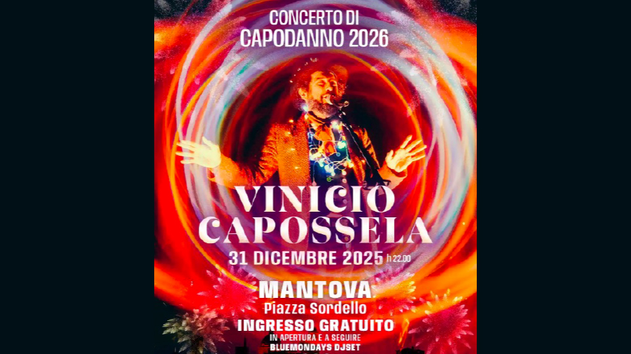 The 2026 New Year’s Eve concert in Mantua will be a free event in Piazza Sordello starring Vinicio Capossela. The date is the 31th od December 2025, with the Blue Mondays DJ set starting at 9:30 pm and the Capossela concert scheduled for 10:00 pm.